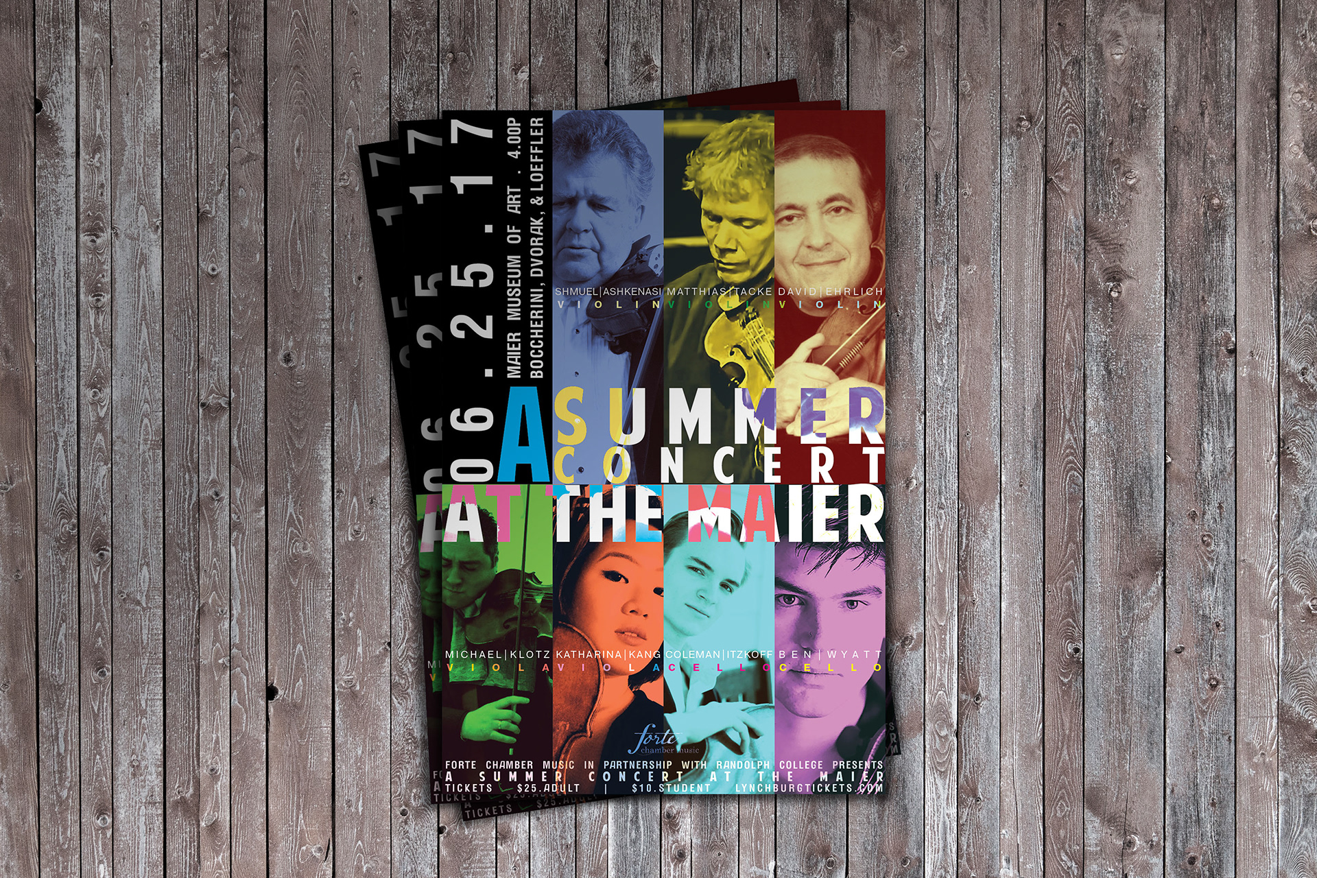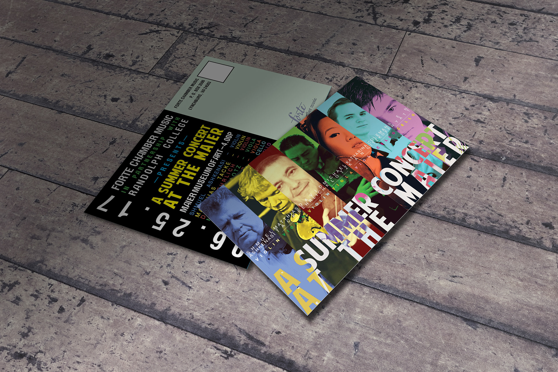 Print promo package for Forte Chamber Music. Style was intended to reflect the bright and bold colors of spring turning into summer, with the excitement of a large collaborative musical project. Design was carried over to a variety of print and digital formats. The Promotional package included designs for a poster, mailer, digital graphic and B&W ad for publication.