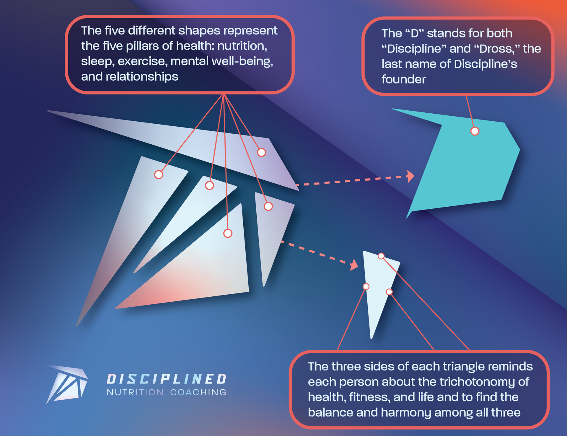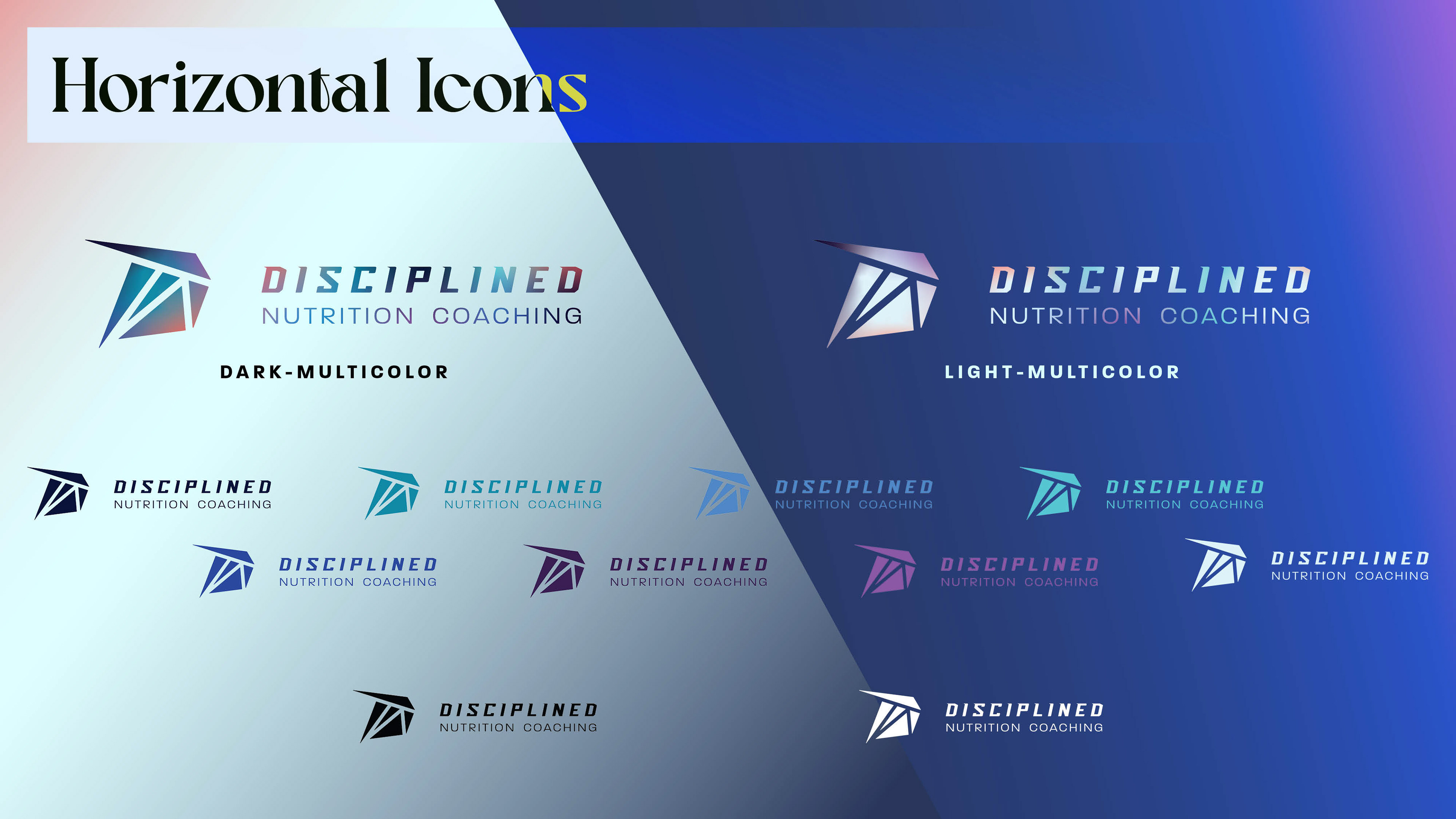 The client was looking for a brand that represented a combination of character traits. The target audience for this coaching practice is performance athletes and people who are serious about their health and wellness. One of the key tenets of Disciplined Nutrition Coaching is emphasizing the five pillars of health: nutrition, sleep, exercise, mental well-being, and relationships. Another important aspect is finding balance between health, fitness, and general life. So a brand identity was created that combined these elements: