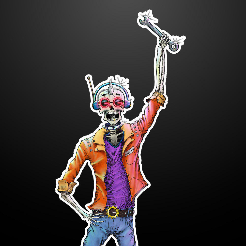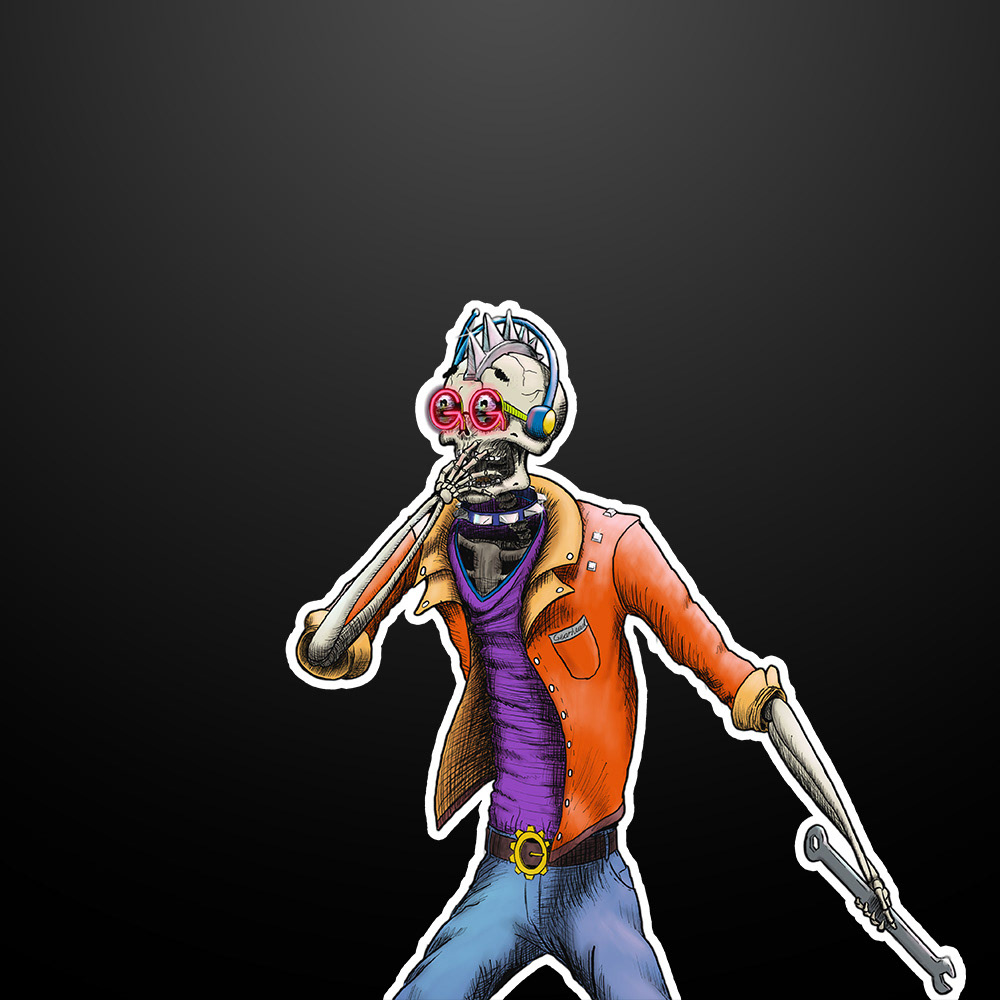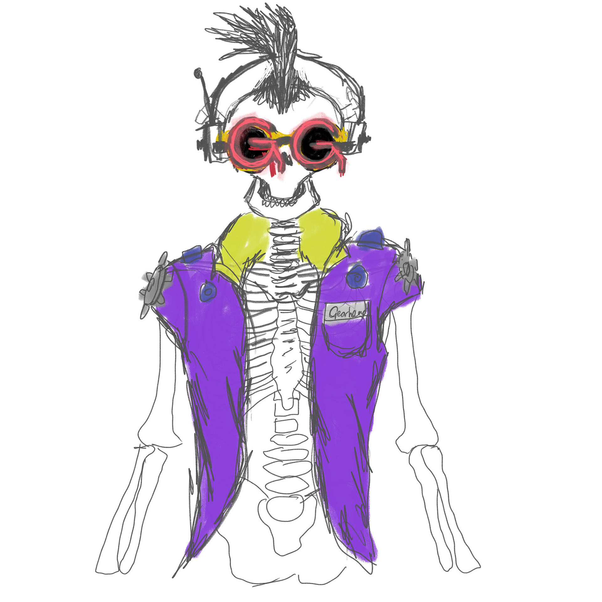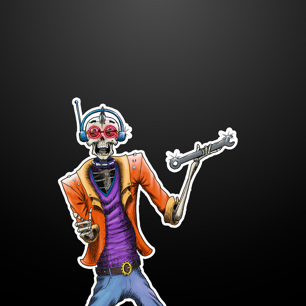 The content creator of the YouTube channel Griff's Garage reached out to me to create a character he could use to create reactions in his videos. Several years ago, I also created the logo and animated video intro for the channel. (See the project under "Griff's Garage") He had the idea for "Gearhead," a friendly mechanic skeleton with a gear embedded into the skull, like a mohawk. Through a number sketches and some AI-generated concepts we finally settled on character who had sunglasses with LED "Gs" in them (a nod to the logo), FM radio headphones, a studded leather jacket, a wrench in his left hand, a "gear-like" choker collar, a golden belt buckle in the shape of a gear and the letter "G", and skinny jeans. After creating the character, I then went on to create a different poses or reactions.