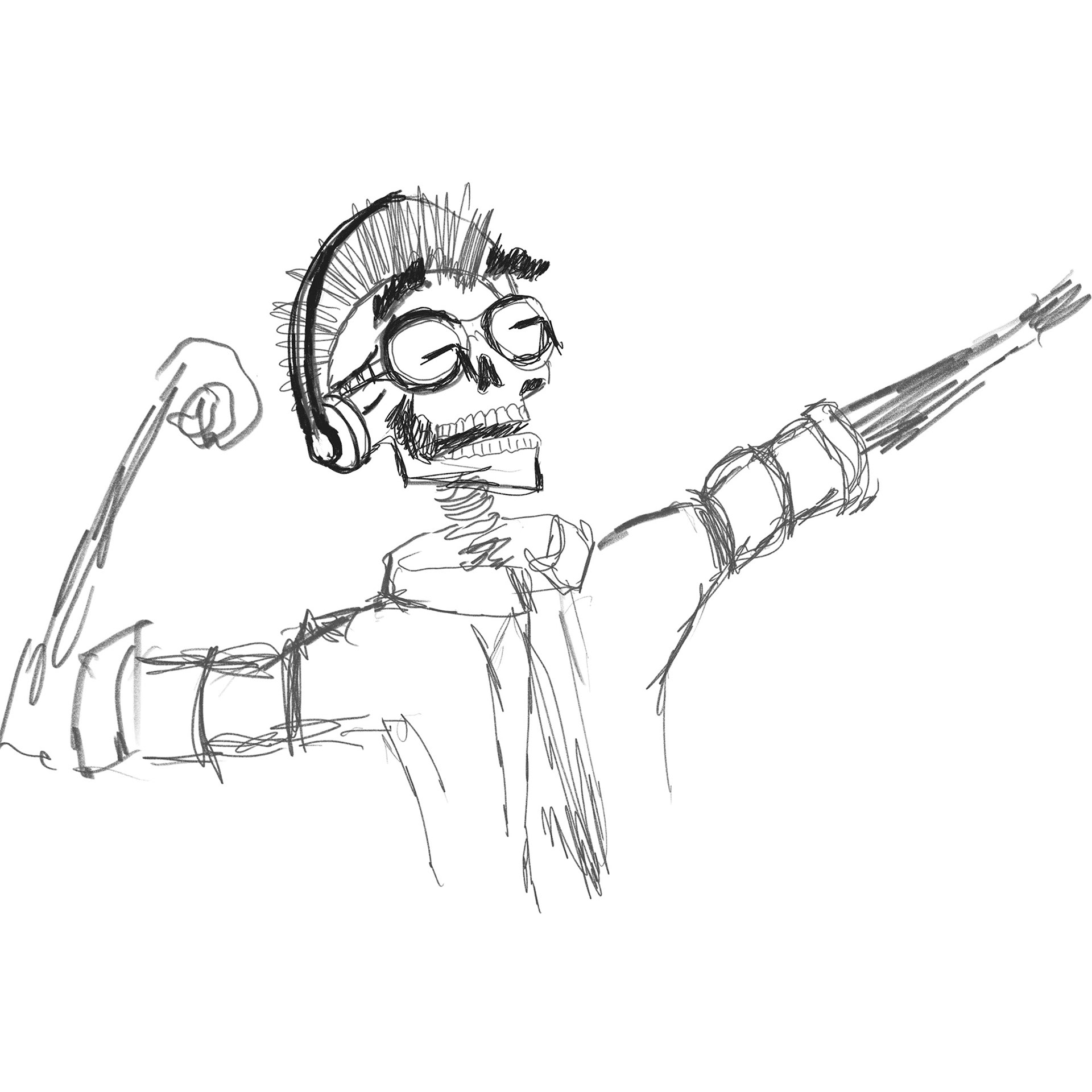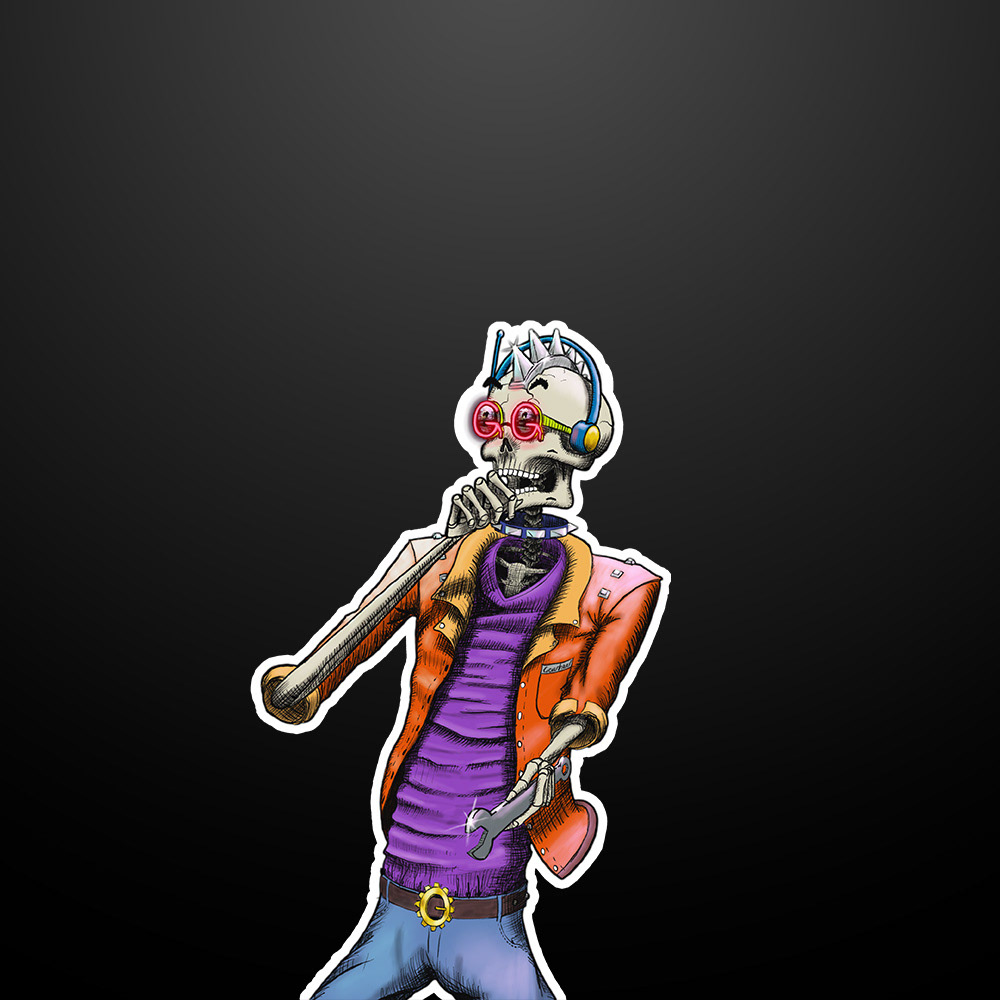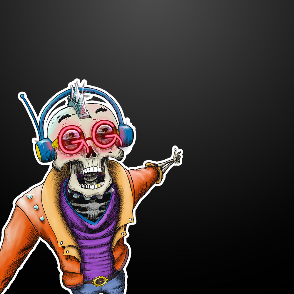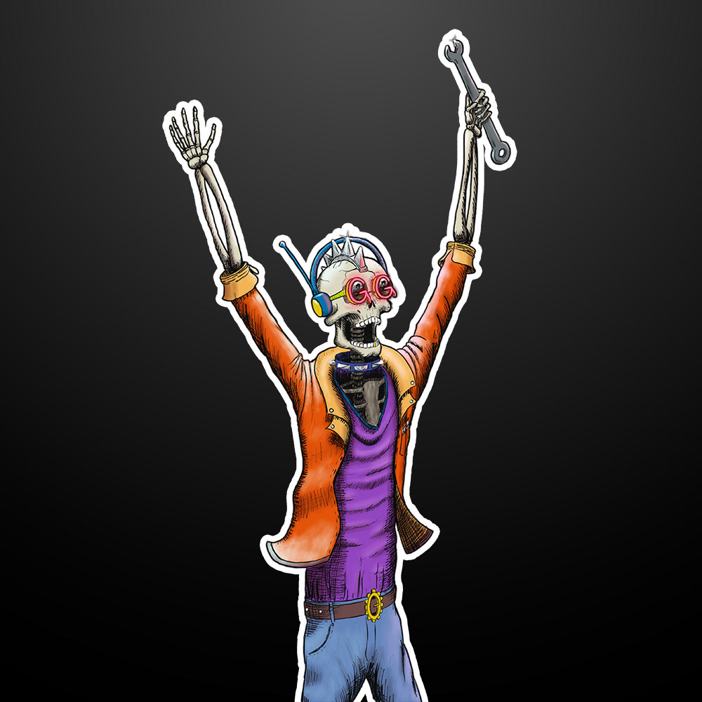 The content creator of the YouTube channel Griff's Garage reached out to me to create a character he could use to create reactions in his videos. Several years ago, I also created the logo and animated video intro for the channel. (See the project under "Griff's Garage") He had the idea for "Gearhead," a friendly mechanic skeleton with a gear embedded into the skull, like a mohawk. Through a number sketches and some AI-generated concepts we finally settled on character who had sunglasses with LED "Gs" in them (a nod to the logo), FM radio headphones, a studded leather jacket, a wrench in his left hand, a "gear-like" choker collar, a golden belt buckle in the shape of a gear and the letter "G", and skinny jeans. After creating the character, I then went on to create a different poses or reactions.