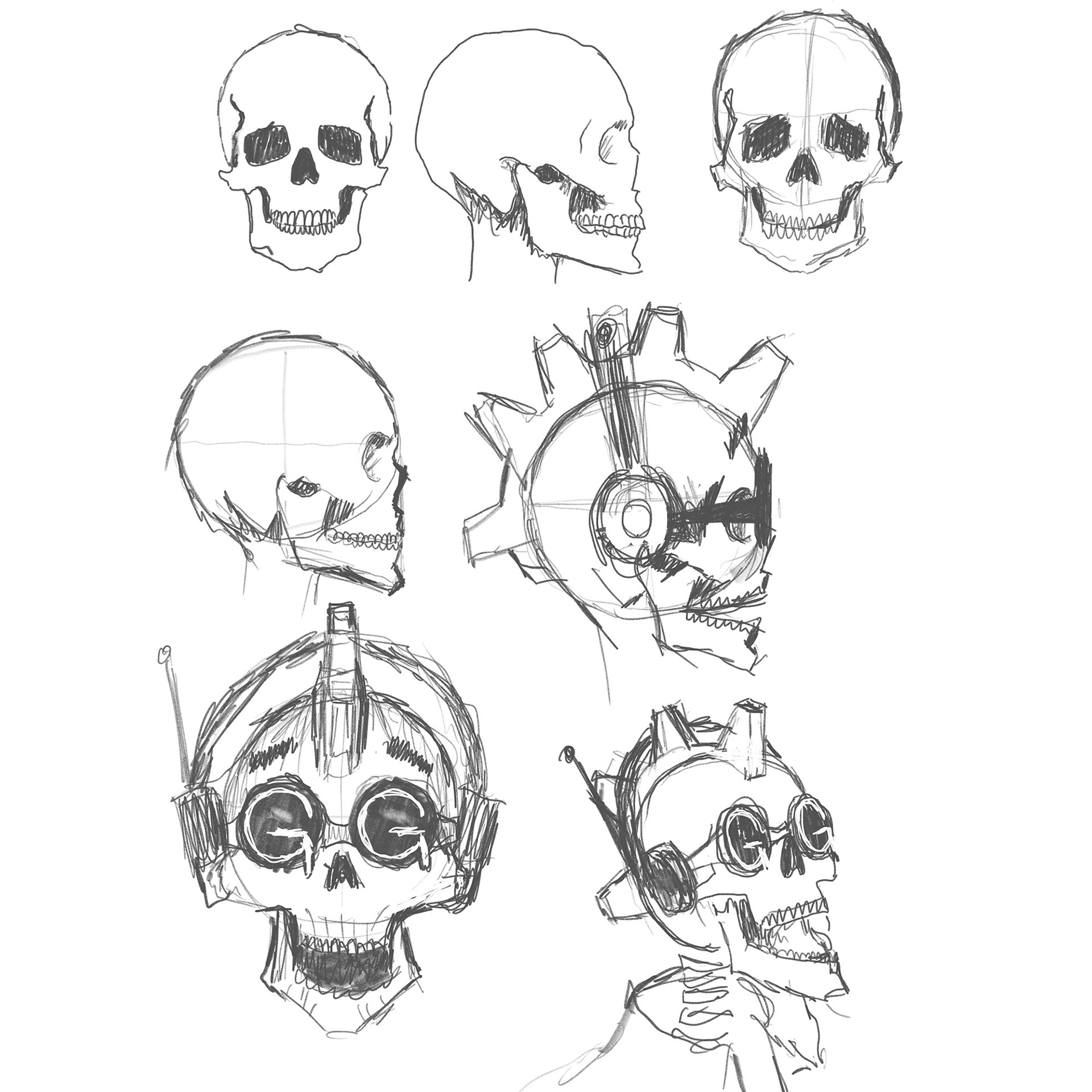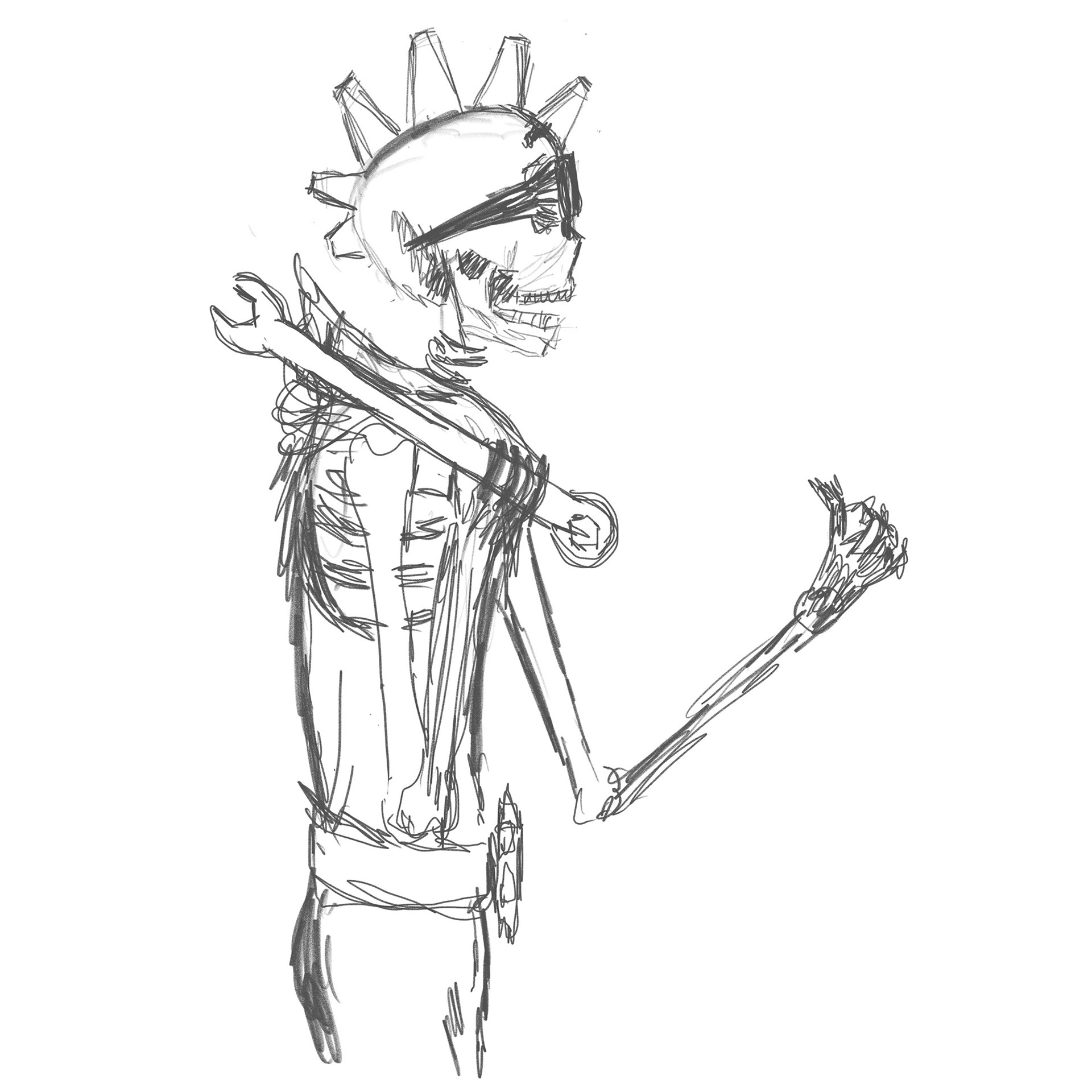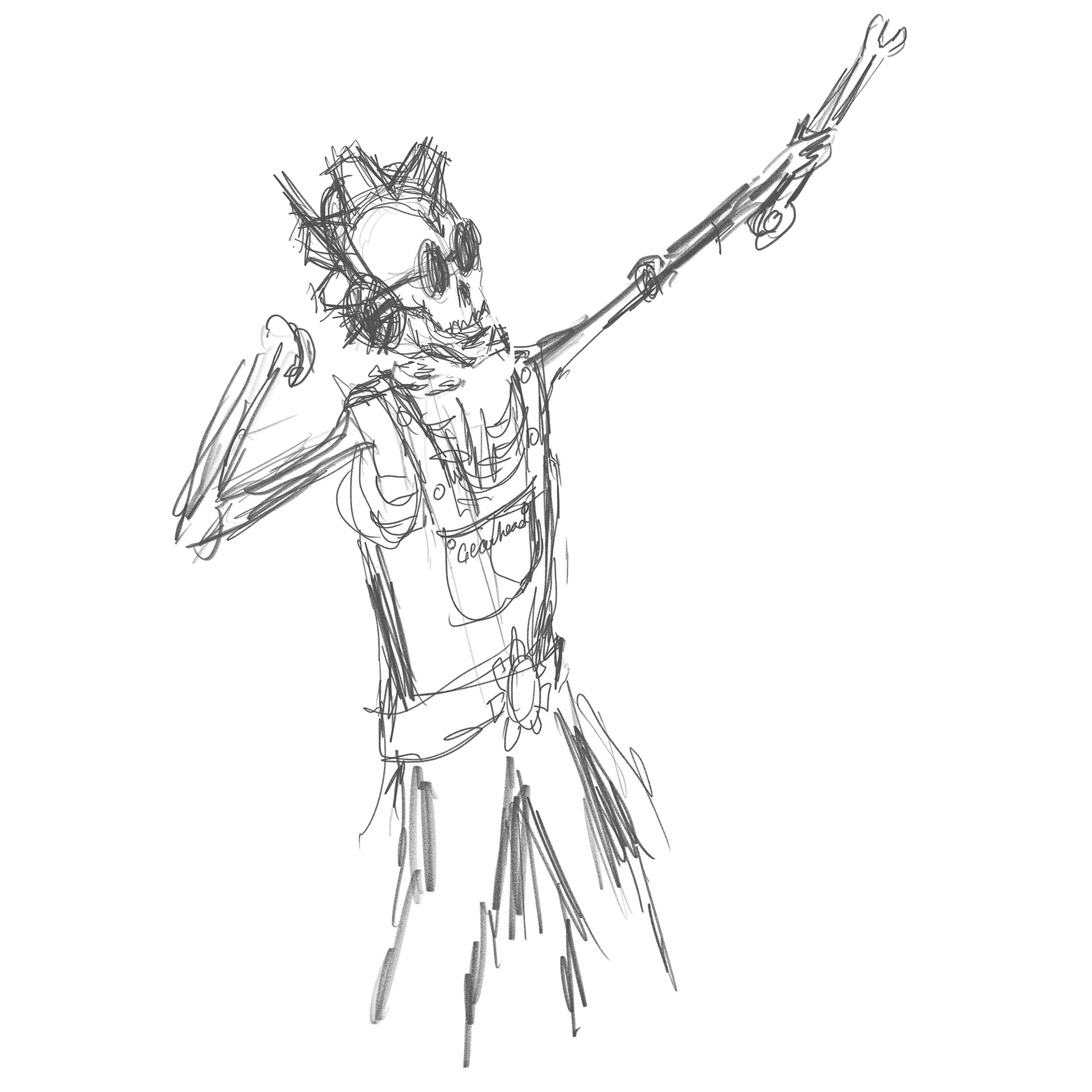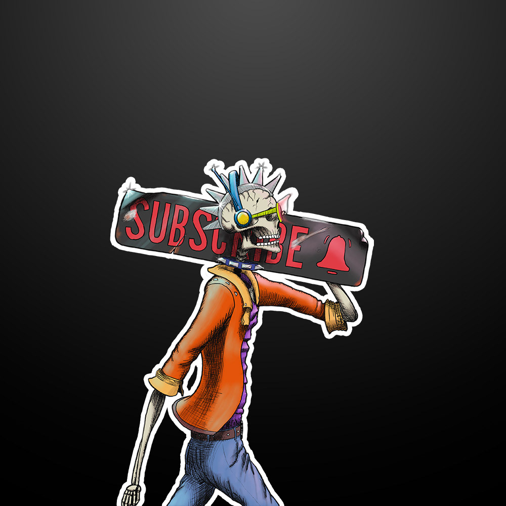 The content creator of the YouTube channel Griff's Garage reached out to me to create a character he could use to create reactions in his videos. Several years ago, I also created the logo and animated video intro for the channel. (See the project under "Griff's Garage") He had the idea for "Gearhead," a friendly mechanic skeleton with a gear embedded into the skull, like a mohawk. Through a number sketches and some AI-generated concepts we finally settled on character who had sunglasses with LED "Gs" in them (a nod to the logo), FM radio headphones, a studded leather jacket, a wrench in his left hand, a "gear-like" choker collar, a golden belt buckle in the shape of a gear and the letter "G", and skinny jeans. After creating the character, I then went on to create a different poses or reactions.