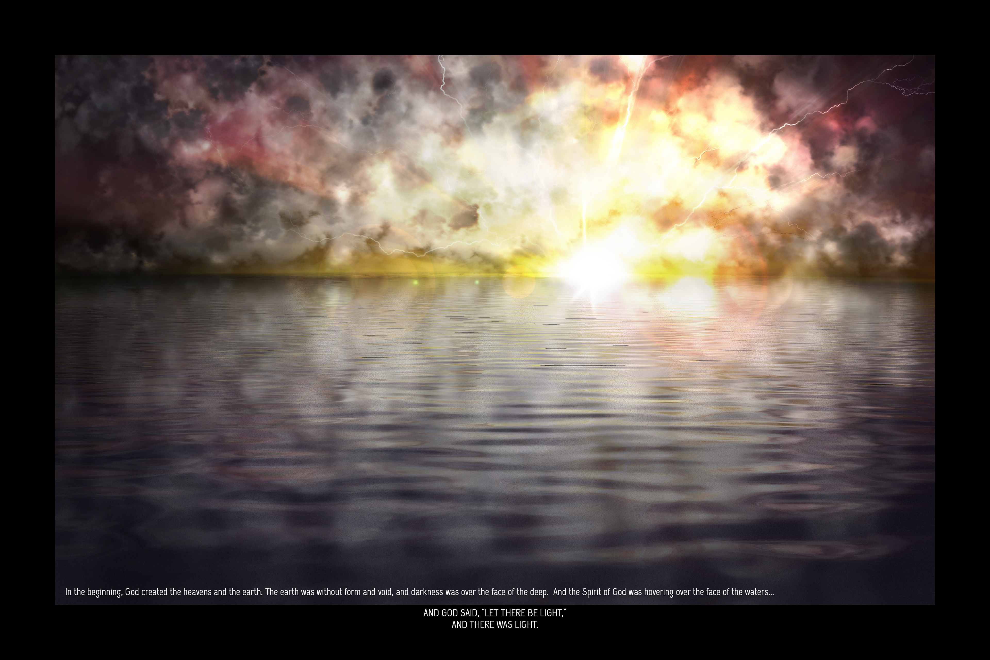 A digital rendering of Genesis 1:1. Originally created for as a cover for a book on God's creation.