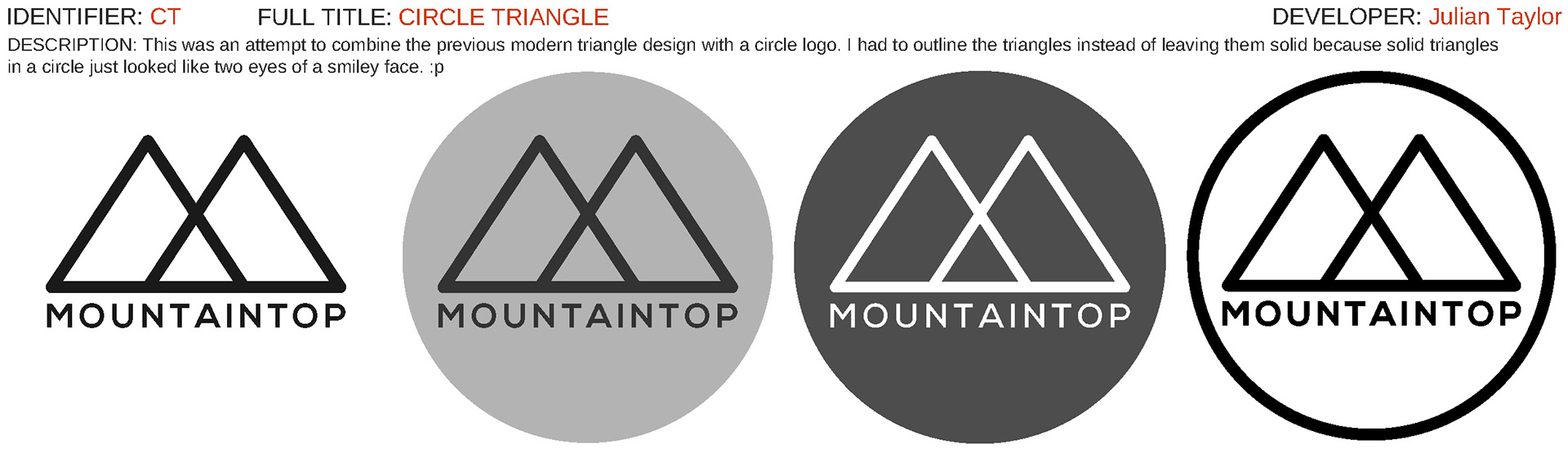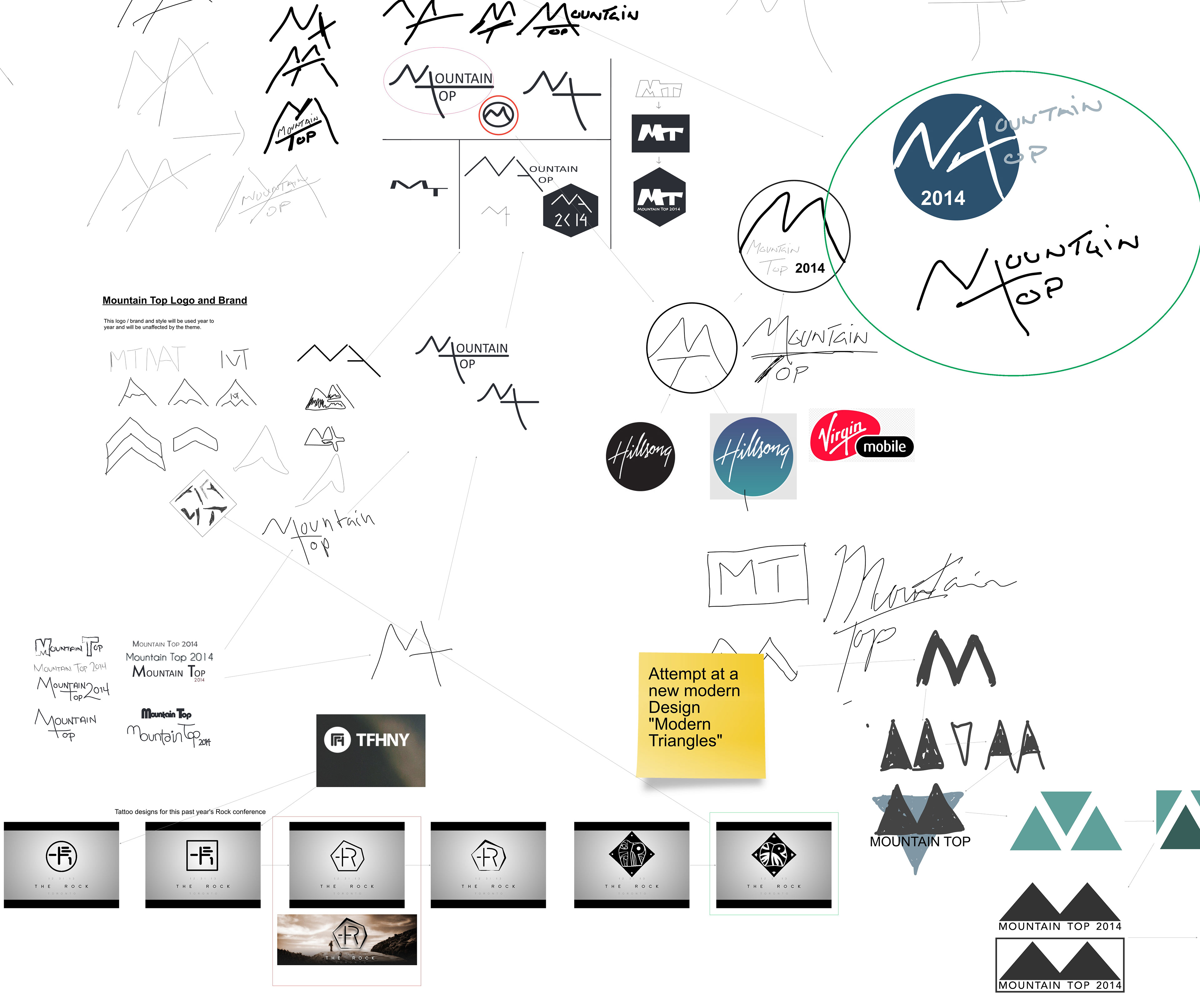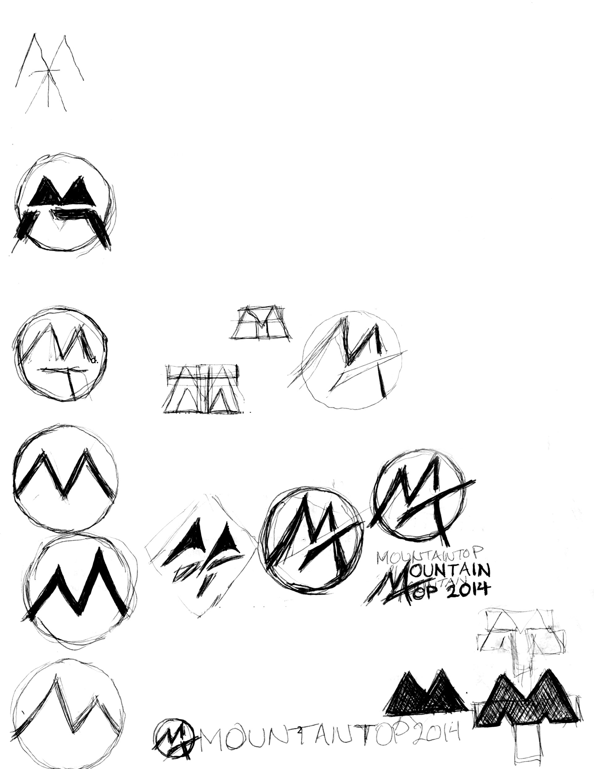 These are the design drafts that I sketched toward the Mountain Top logo design. Final Design can be found