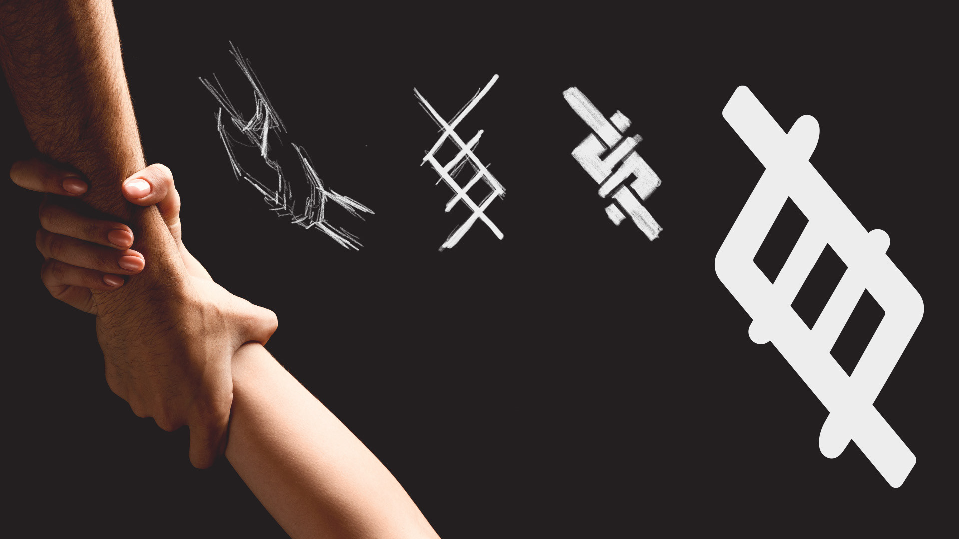 The challenge was to produce something that could be both simple and yet encompass everything they aim to achieve. The two general concepts I played with were 1) the idea of a building or tower, to represent the idea of fortifying or building something solid and valuable. And 2) holding hands, to represent the fact that all charitable work has to do with people and helping people. At the same time, I tried to incorporate two "F"s into the design. The final design was two Fs, mirrored vertical and overlaid on top of each other to represent two hands holding each other — one person helping up another person.