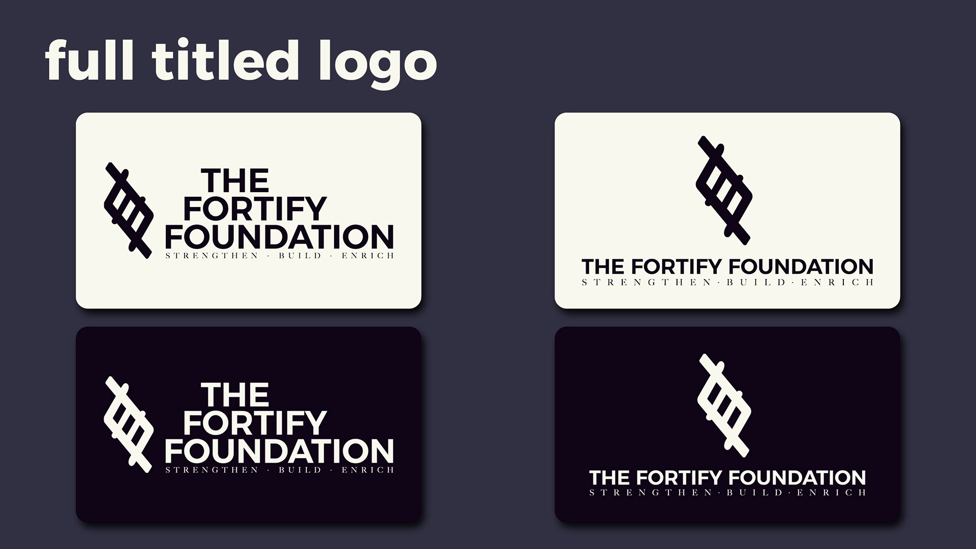 I was asked to design a logo for a new foundation called "The Fortify Foundation" with a broad mission statement: "Supporting individuals who continue to pursue their goals in spite of life's challenges." They have a heart for people and particularly impoverished populations, and they seek to provide an all-encompassing and holistic approach to helping those populations. The types of support they plan to offer include academic support, career help, family structure counseling, mental health, financial literacy, and more. Not only will provide direct support to individuals in need but they also hope to provide financial support to local nonprofits that share their goals and values.