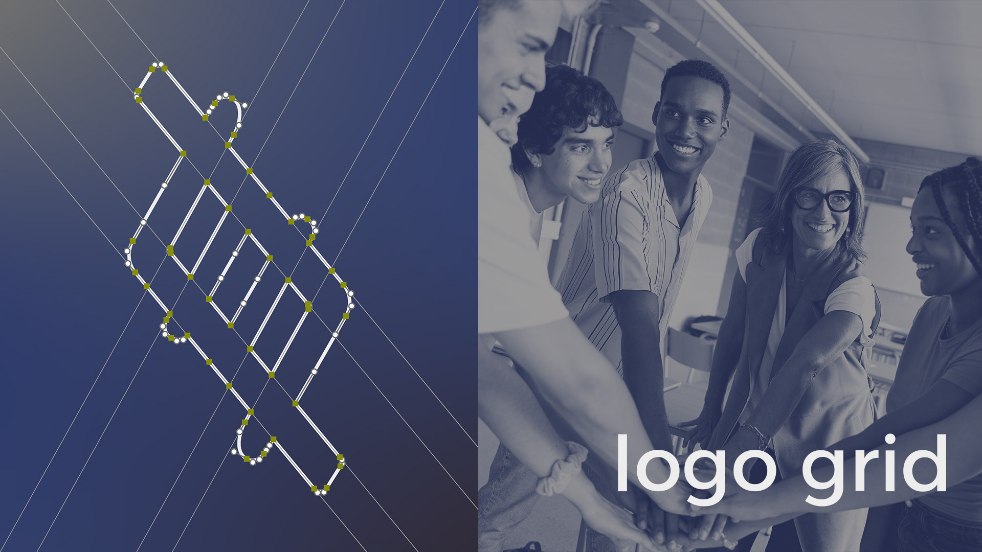 The wordmark has the words stacked in such a way so as to reflect a building being built, almost like a pyramid being constructed.